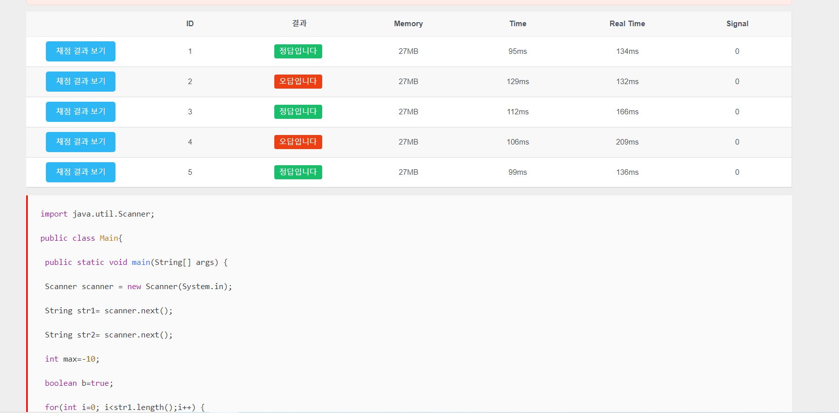 위에 코드로 채점한 결과입니다.