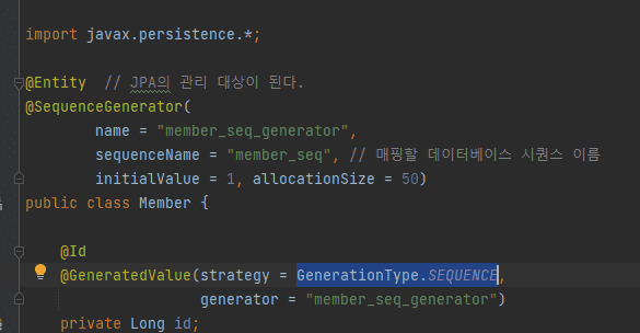 추가적으로, 처음에  GenerationType.SEQUENCE