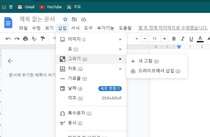 구글 Docs 같은 경우, ALT + i 를 누르시면 아래와 같이 해당 해당메뉴가 나오고