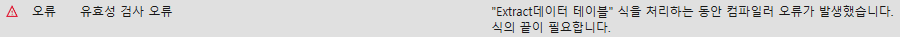 'Extract데이터 테이블' 이라는 변수를 사용하시는 곳에서 문제가 발생한 것 같습니다.