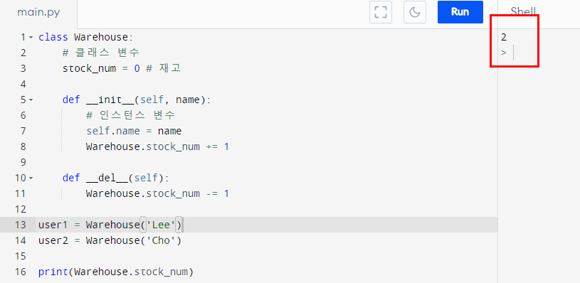 분명 객체(인스턴스)가 2개가 생성되었는데 stock_num은 0이 출력됩니다.