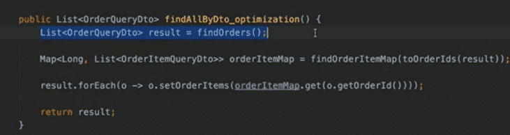 컬렉션 이지만 쿼리가 한번 아래에서 처럼 총 2번이 발생하는 것을 확인하실 수 있습니다.