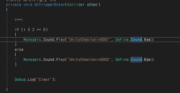 Sound manager 부분 Stop()이 작동하지 않는 이유가 뭘까요??