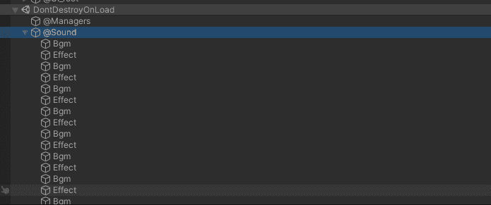 딱 봐도 @Sound 아래에 Bgm 게임오브젝트가 너무 많이 생성되는데