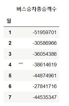 1 297033.0 2 762146.0 3 1278013.0 4 1572530.0 5 797374.0 6 1164515.0 7 NaN이런식으로 나오는데 저는 하나의 데이터표를 원합니다.이런식으로 하나의 컬럼을 가져왔을때 표처럼 출력하고 싶은겁니다