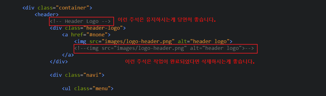 실무가 아닌 시험 중에 주석으로 보기에 편하게 하려고 했는데 강의중에 실무에는 꼭 지우라고 하셨는데 혹시