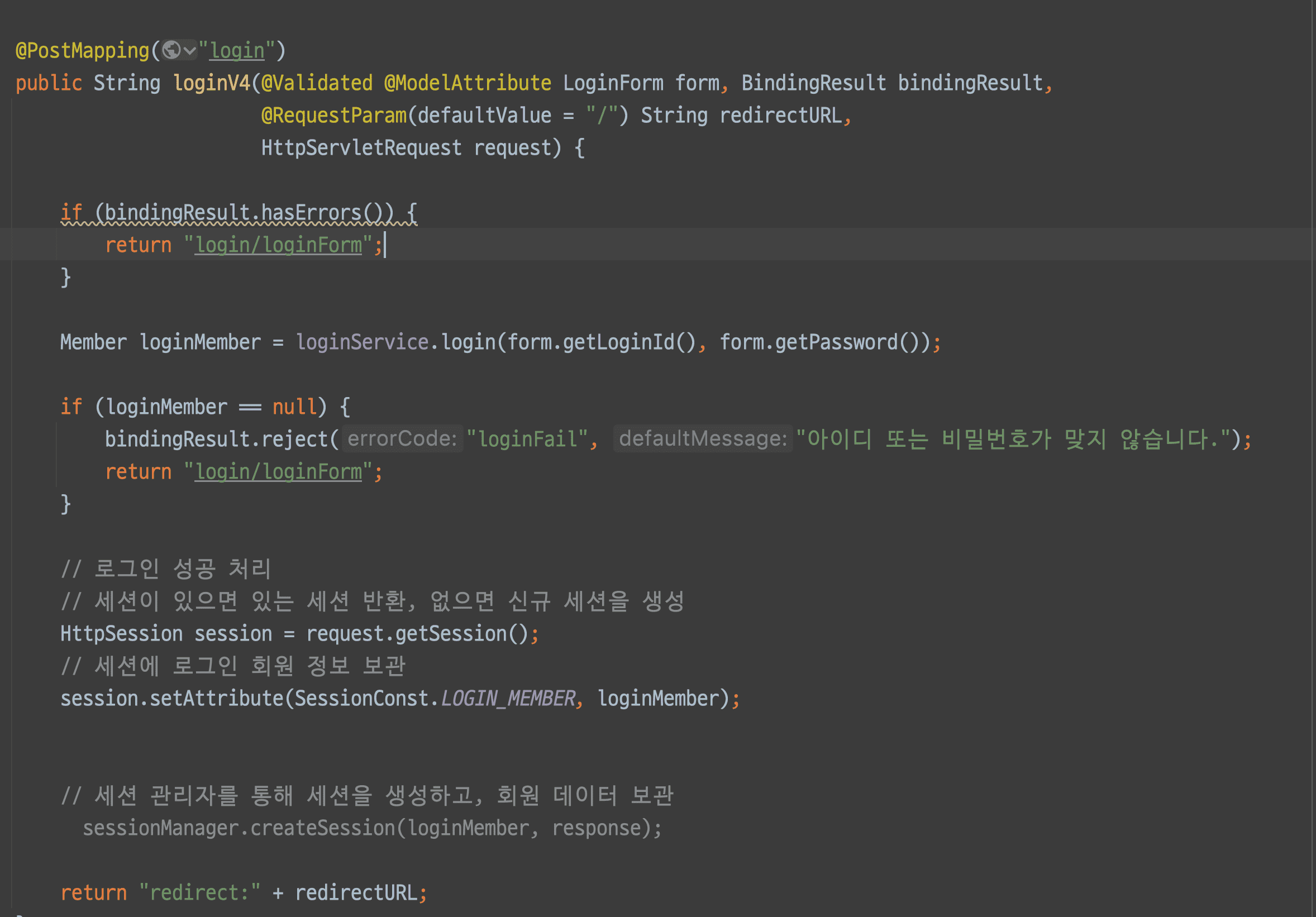 여기서 redirectURL을 다른거로 바꾸니까 그냥 home화면으로 가지던데 (ex.http://localhost:8080/login?test=/items)