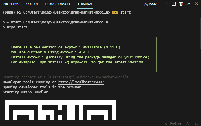 문제 해결했습니다~! ngrok돌리니까 오류나서 서버 안돌린거 같았는데..서버 돌린다음에 에러나는게 좀 몇개 있더라구요..! expo,  node.js  삭제하고 다시 설치하니까 정상작동합니다!