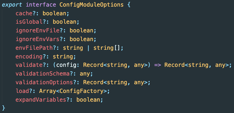 ConfigModule.forRoot 의 경우, 여러가지 옵션을 설정할 수 있습니다.