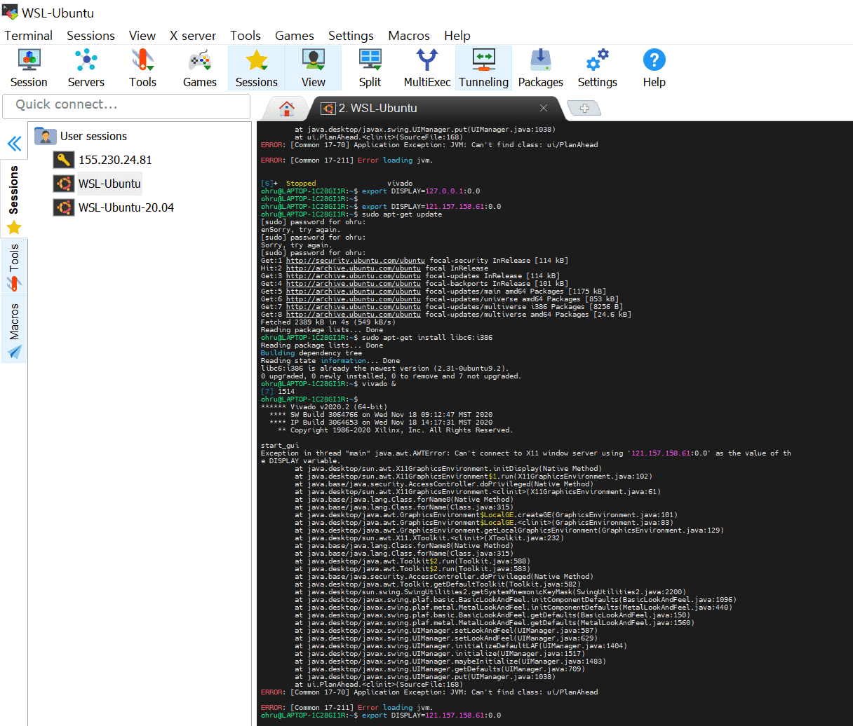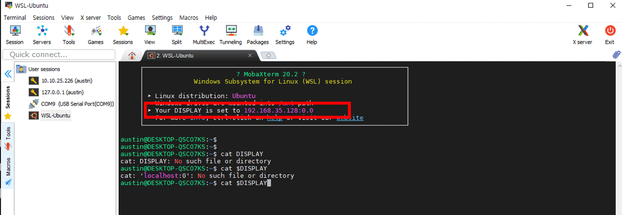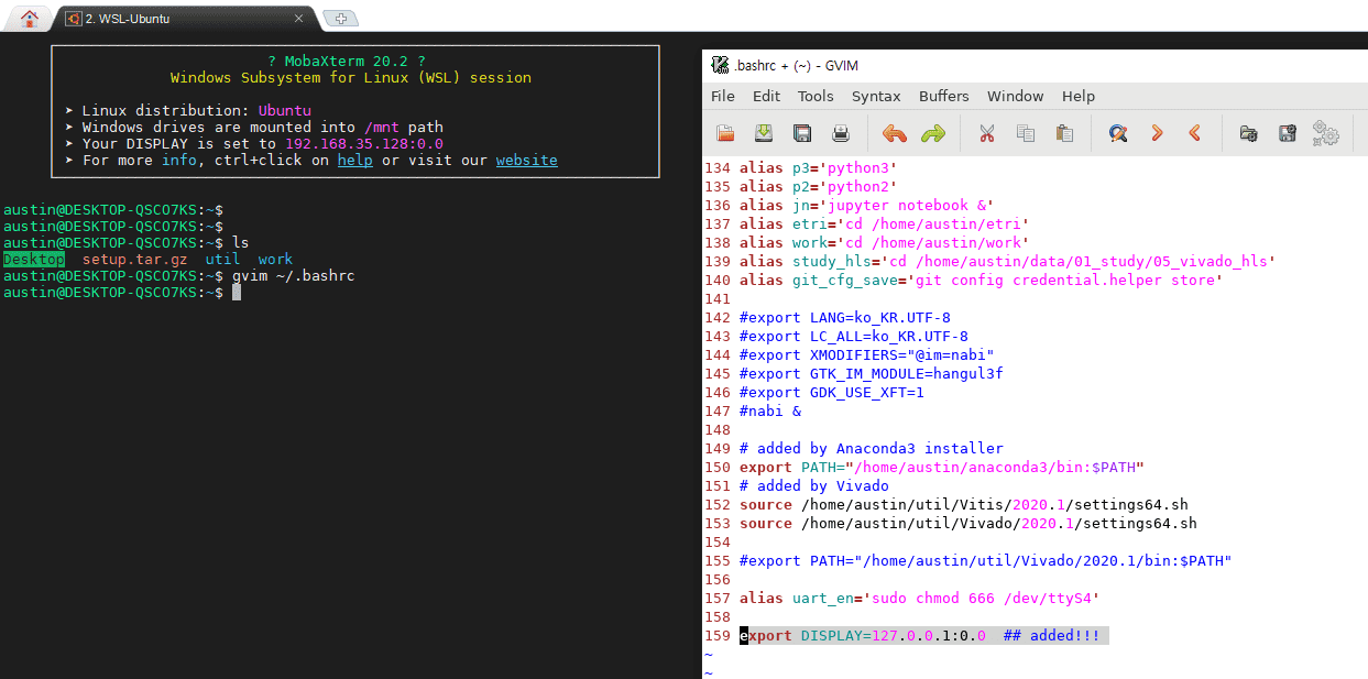 혹시 안되시면, mobaxterm 에서 WSL-ubuntu 새로 시작하시고