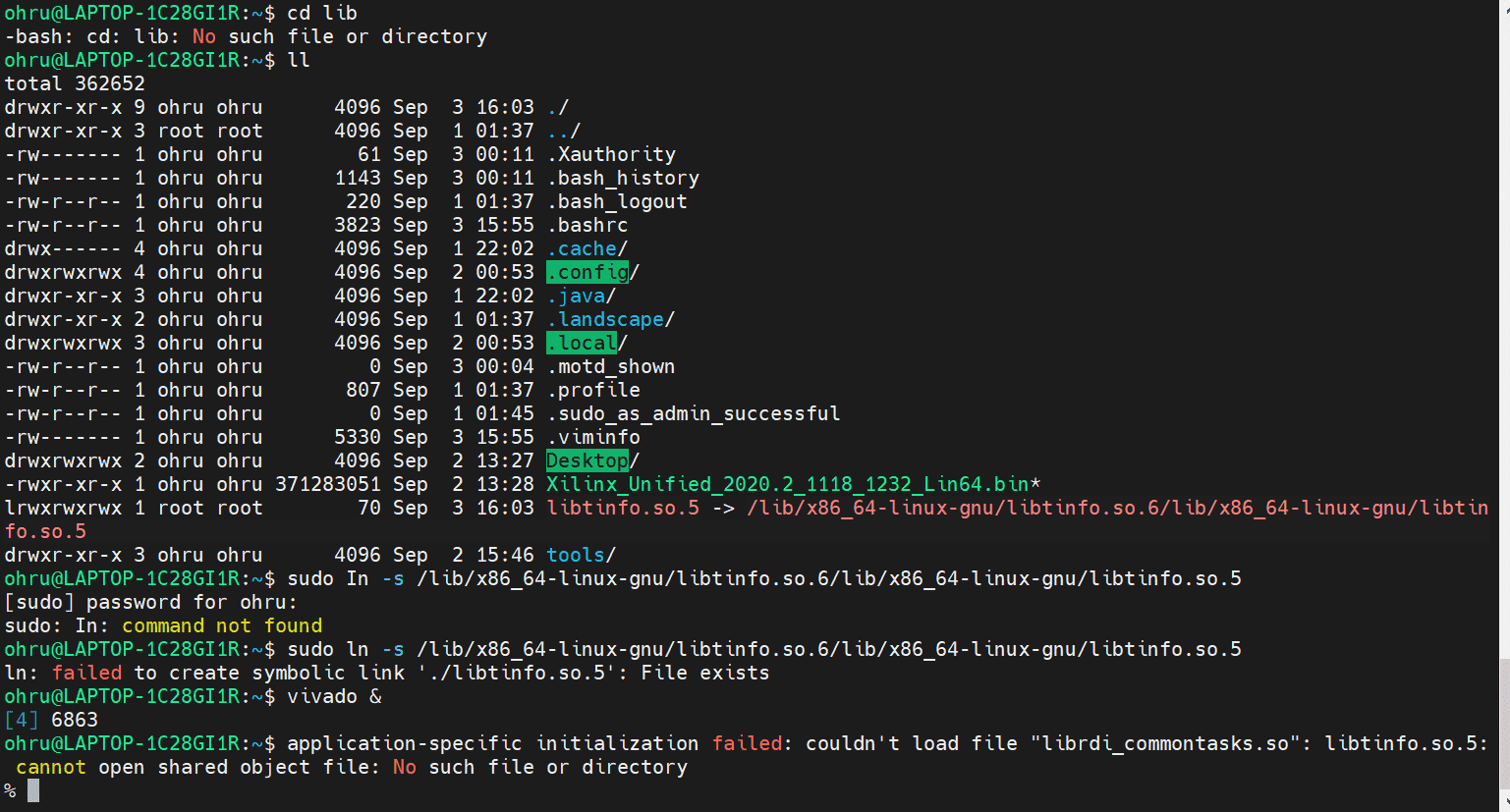 ohru@LAPTOP-1C28GI1R:~$ sudo ln -s /lib/x86_64-linux-gnu/libtinfo.so.6 /lib/x86_64-linux-gnu/libtinfo.so.5