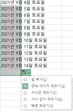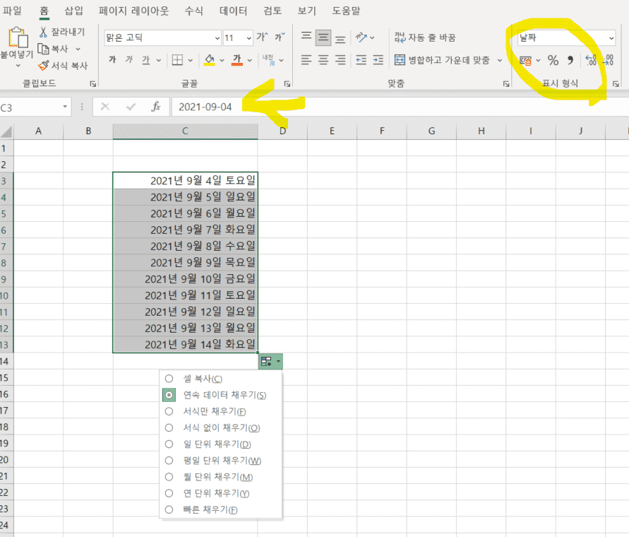 년월일 엑셀에 적어서 채우기 하면 선생님과 다르게 나와요