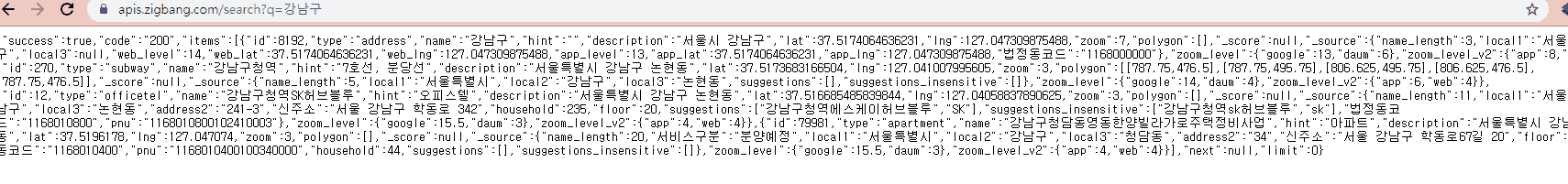 위에 https://apis.zigbang.com/search?q={}".format(keyword) -> 이 부분을 직방 사이트에서 받아올 수 없습니다.. 많이 바뀌었더라고요;