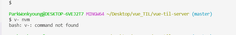 안녕하세요 카도아보님, nvm 이라고 명령어를 입력해 주셔야 합니다. 윈도우에서 nvm 설치하는 인스톨러는 아래 링크 참고하세요 :)