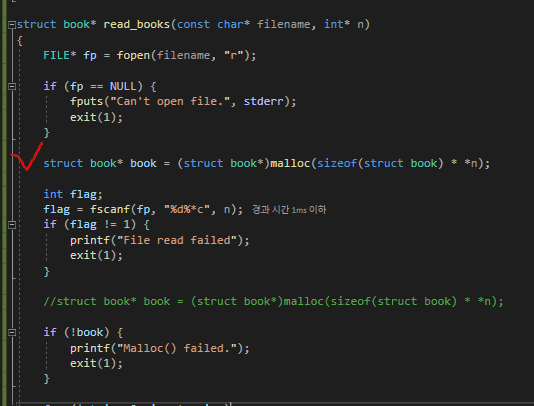 //struct book* book = (struct book*)malloc(sizeof(struct book) * *n);
