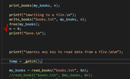 my_books 를 이미 free 시켰는데 이걸 read_books2 에 가져가서 사용하고 계세요. 두번째 이유는 찾으셨다고 했는데 이 이유 맞으실까요!