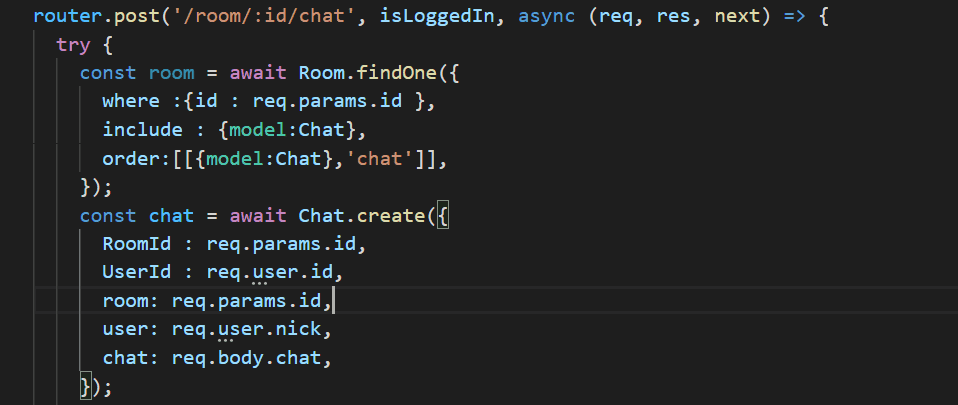 위 사진은 routes/index의 router.get(/room/:id~~)의 아래 코드입니다