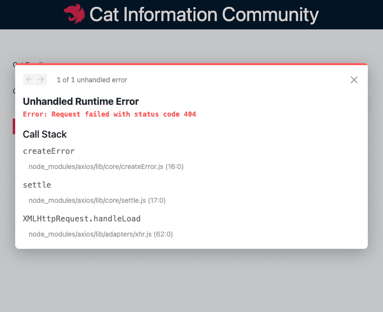 404 코드는 해당하는 api가 없을때 발생하는 코드입니다! 프로젝트 api가 안맞아서 그런 것 같은데 혹시 개발자 도구에서 네트워크 탭 보여주실 수 있나요? 도움을 드리겠습니다.