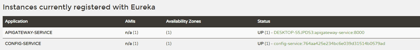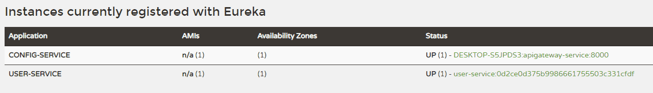 다만 이상한 것은, 유레카 대시보드에 apigateway 또는 user-service의 이름이 CONFIG-SERVICE로 덮어 씌워집니다.