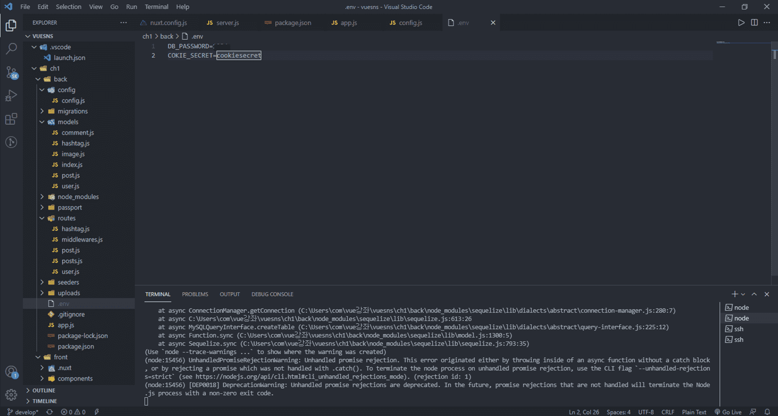 눈으로 console.log(process.env.DB_PASSWORD)를 찍어보아야