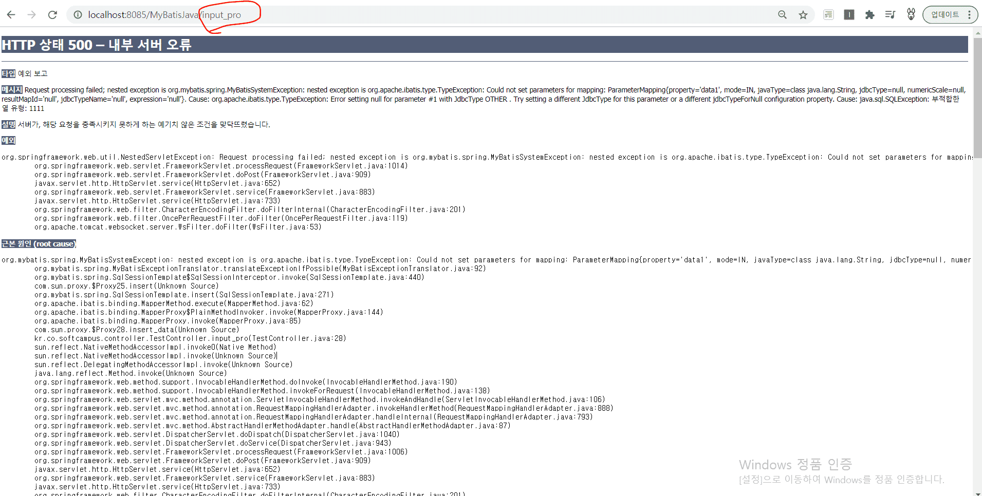 37강 MyBatisJava 를 완성해서 실행하면 이와같은오류가 지속해서 뜹니다. 혹시 이유를 알수있을까요
