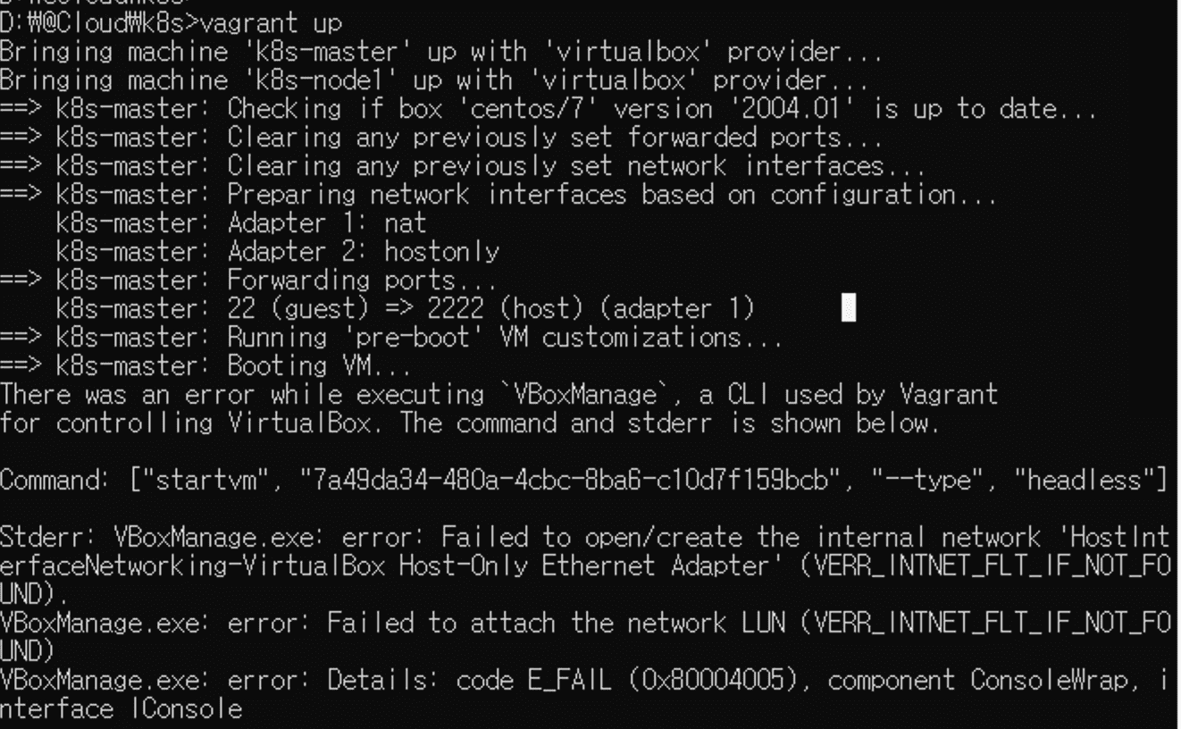 안녕하세요. vagrant 로 설치 진행 시 아래와 같이 에러가 나오는데요.