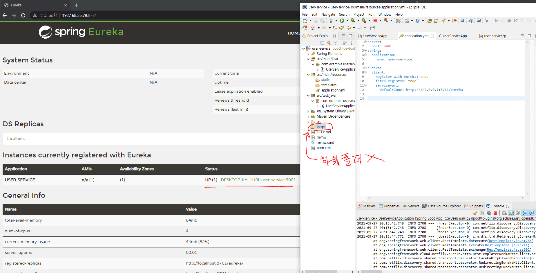 이클립스에서 User service 프로젝트를 생성하고 컴파일 후, target 폴더가 생성되는데 저는 target 폴더의 하위폴더가 없는데 향후 문제가 있을까요?... 왜 target 폴더의 하위폴더가 생성이 안될까요?