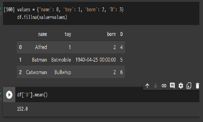 평균을 계산하기 전에 df.D 로 해당 컬럼에 들어가 있는 값을 확인 후 다시 평균을 계산해 보세요!