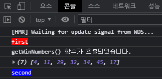 setWinNumbers가 바로 호출되어서 덮어씌워졌을 것이다 라고 말씀해주셔서 console.log()를 이용해 아래와 같이 로그를 찍어봤습니다.