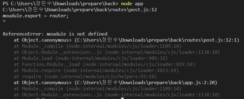 back 폴더는 제 소스코드 그대로 다운받으신건가요? 제 소스코드 그대로라면 저 에러가 날 수 없습니다. 아니면 직접 따라서 치고 계신 건가요?