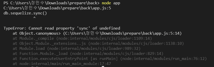 오타 및 npx sequelize init을 back 폴더가 아닌 prepare 폴더에 설치했네요...ㅠㅠ 수정 후