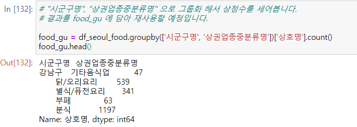 [9/15] 구별 음식점 분석으로 서브셋 만들기 - boolean Indexing 이해하기