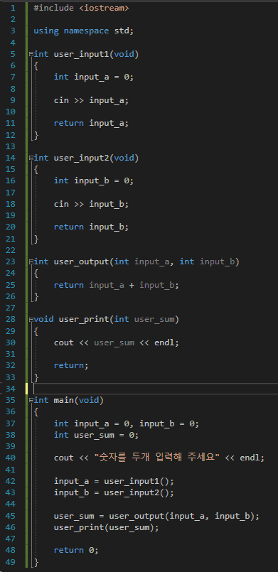 input_a = user_input1(); 하고 user_input1() 함수 만들고 하는 것 보다