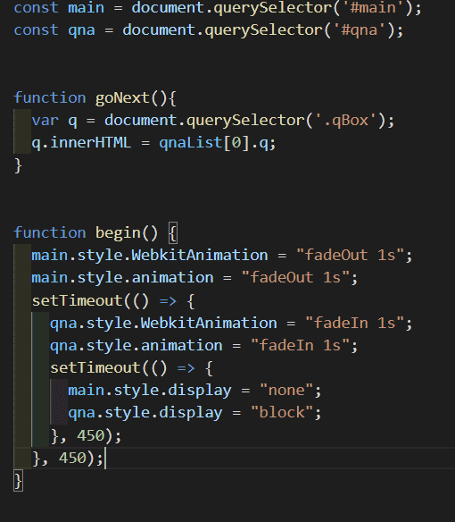 begin함수로 qna페이지가 나타나는 것 까지는 되었는데 qna페이지에서 goNext에 있는 qnaList[0]값이 안 나오는데 뭐가 문제인지 모르겠습니다ㅠㅠ