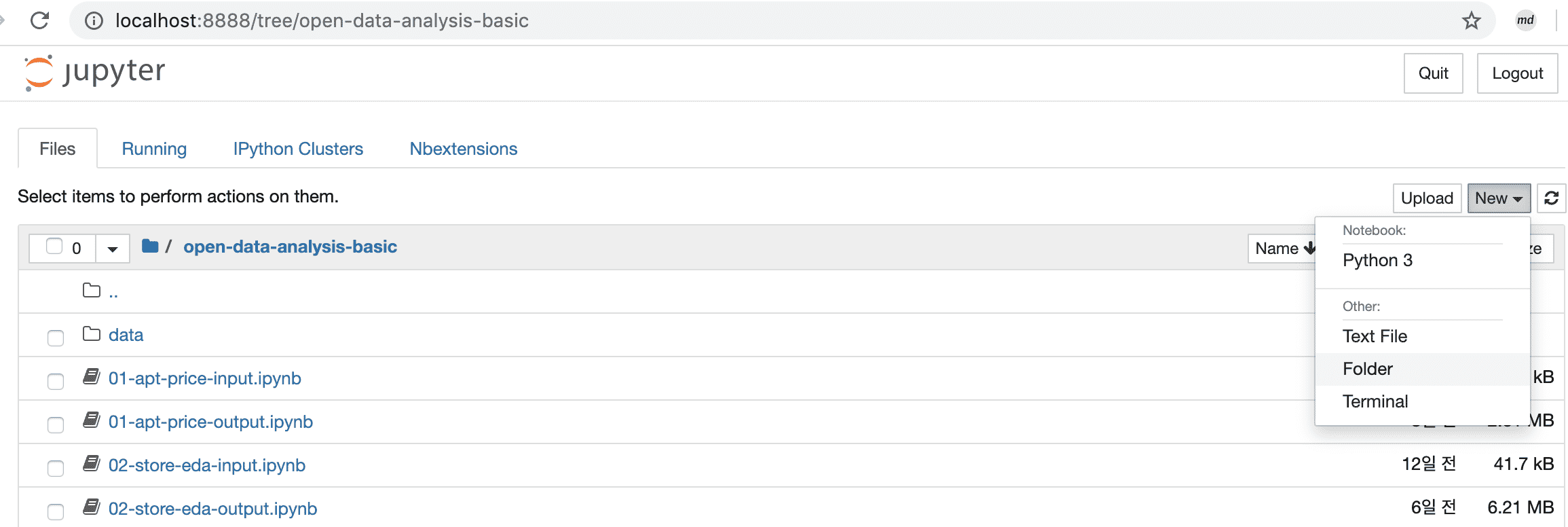 주피터 상 data폴더를 어떻게 생성하셨는지 알 수 있을까요.?