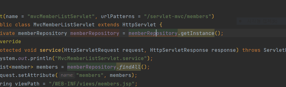 private memberRepository memberRepository = hello.servlet.domain.member.memberRepository.getInstance();