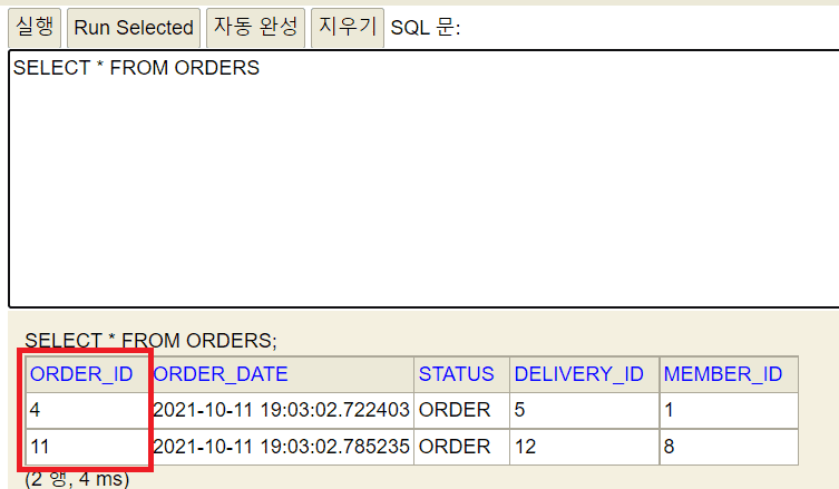 그래서 DB에 여러 데이터가 동시에 생성되는 환경이라면 id값이 연속적이지 않을 수 있습니다.