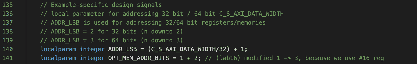 아 저 코드는 Xilinx 에서 만든거에요. ADDR_LSB ㅎㅎ (설계자가 protocol 에 맞춰서 가능하도록 해놓은 것 같긴하네요. 하지만 IP 는 지원안한다 이런느낌? )