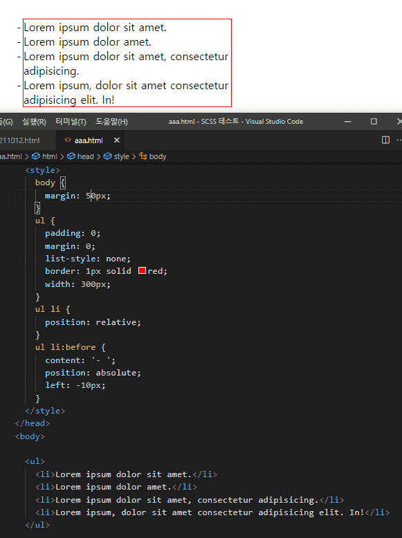 content: '-'; 을 한 후