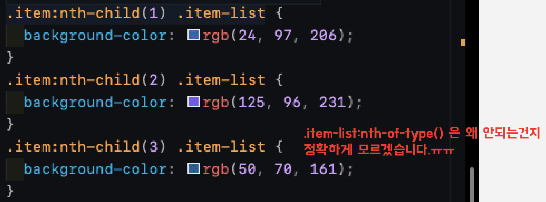 .item:nth-child() .item-desc {} 로 설명해주셨는데