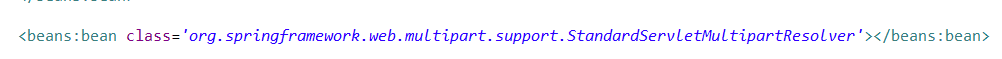 <beans:bean class="org.springframework.web.multipart.support.StandardServletMultipartResolver" id='multipartResolver'/>