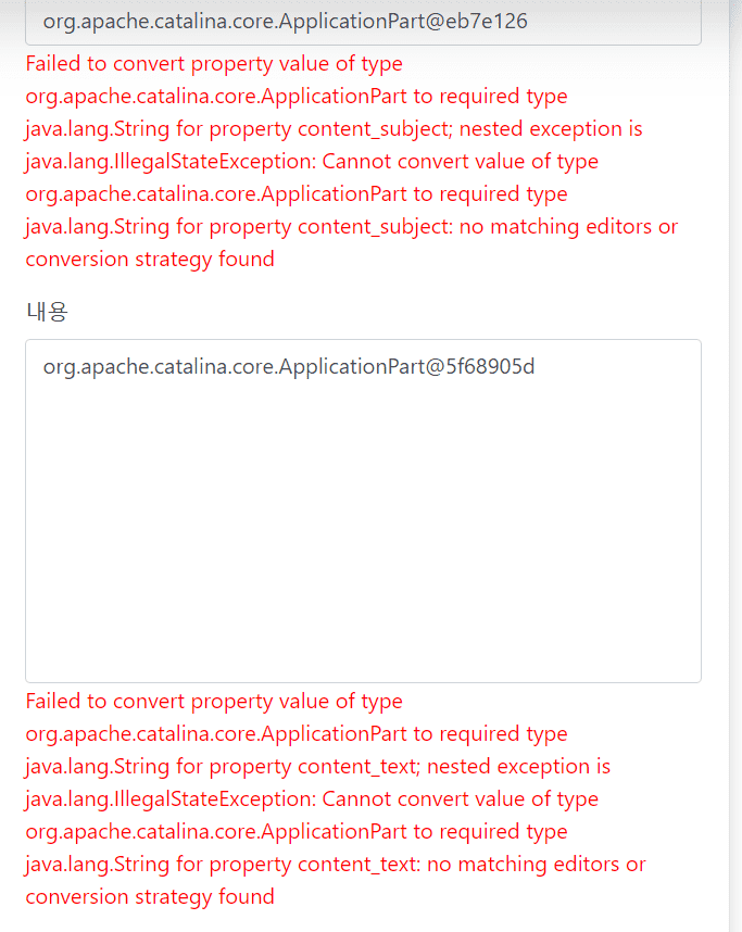 현상은 빈값,값을 넣어서 제출하던 동일하게 아래와같이 나옵니다.