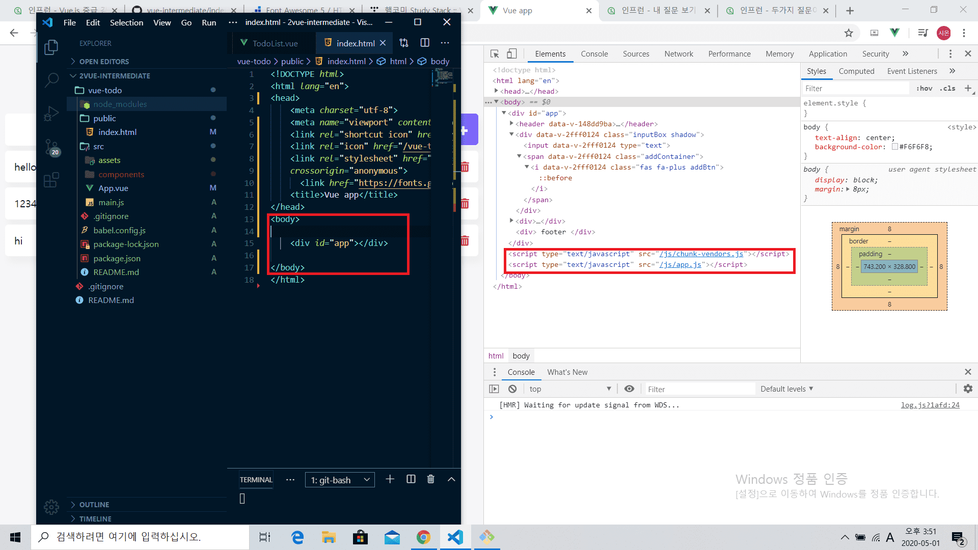 저렇게 vs code에서 index.html 을 열어보면 보이지 않는 스크립트 파일 두개가