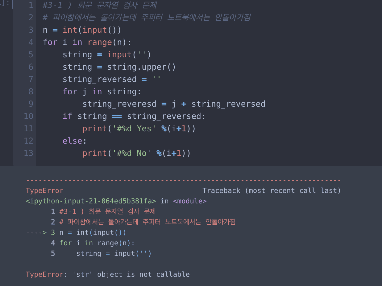 이렇게 코드를 짜보았는데, 1. 주피터노트북에서는 str오류가 뜹니다. 검색해도 어떤 문제인 지 모르겠어서, 파이참에서 돌려보니까 또 잘돌아가집니다! 어떤 문제가 있는 것일까요?