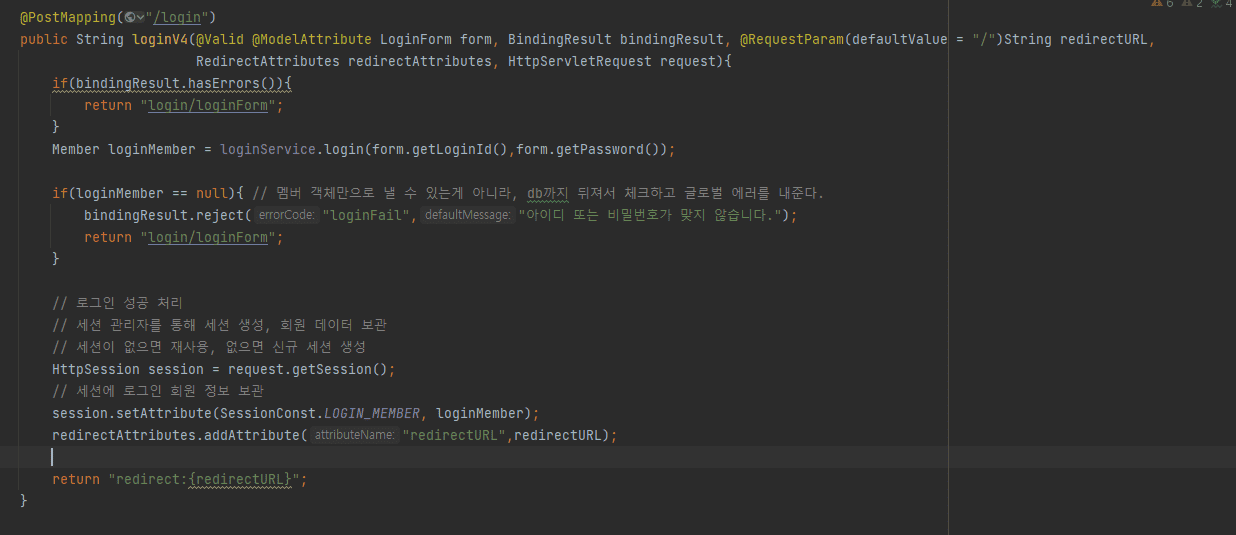 redirectURL 변수에 "/items" 라는 문자열이 담기게 되는데