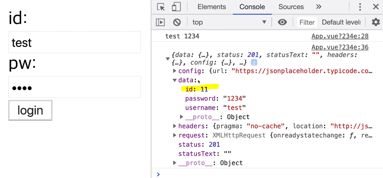 2) 해당 내용은 jsonplaceholder의 규칙과 관련된 부분인데요. 일단 jsonplaceholder에서 제공하는 사용자 데이터는 최대 10개를 제공하고 있습니다. 여기서 post로 한 개를 더 생성하게 되면 11번째 사용자 즉 id가 11인 데이터가 생성되는 것을 응답으로 확인할 수 있습니다.