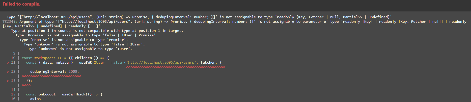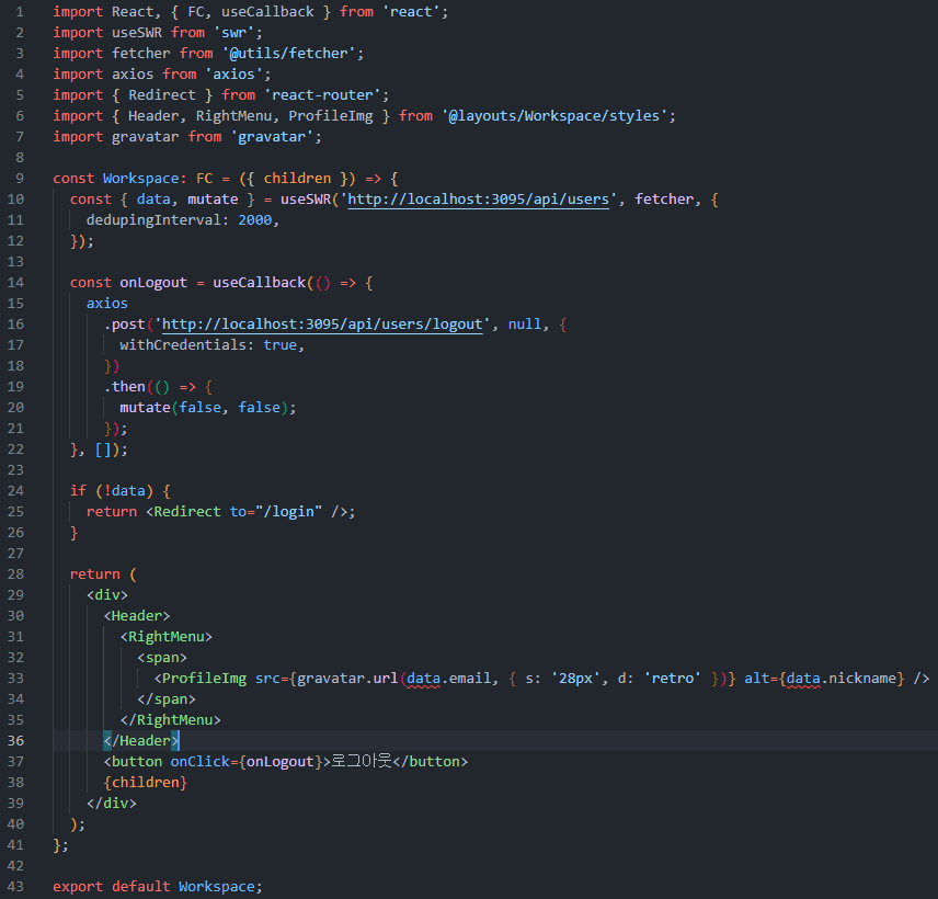 fetcher 부분에 return을 추가하라는 말씀을 들었는데 애로우 펑션은 한 줄로 정의되면 자동으로 리턴이 되지 않나요 일단 추가해봤을 때에도 에러는 출력되었습니다.