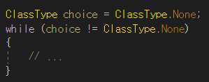 while문에서 true 대신 choice != ClassType.None를 썼을 때의 오류
