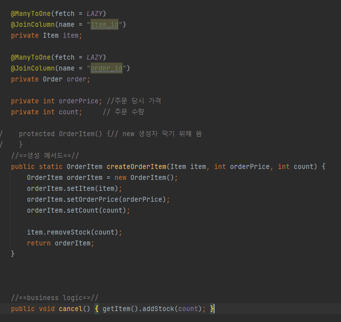 cancel 메서드에서 Item에 get 함수말고 item.addStock(count); 라고 하면 이상할까요? 형식때문에 get함수쓰는건가요