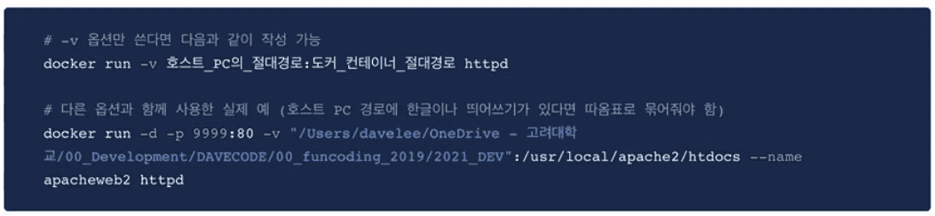 우선은 해당 폴더? 는 최초 도커 실행시에 아파치가 동작하면서 생성될 수도 있어서, 굳이 처음에 해당 폴더를 찾아갈 필요는 없긴 할 것 같은데 어떠신가요? 우선 실행이 원하시는대로 되는지만 먼저 확인하시면 어떨까해요. 또다른 이슈가 될만한 부분이 해당 이미지가 잘못 만들어져서, 아파치가 해당 이미지에 제대로 안넣어졌거나 할 수도 있을 수 있을텐데요. 그 때에는 무조건 영상과 완벽하게 처음부터 똑같이 해보신 후에, 해당 영상대로 완벽히 동작했을 때, 그 다음에 다시 조금 변형된 작업을 해보시면 어떨까요?